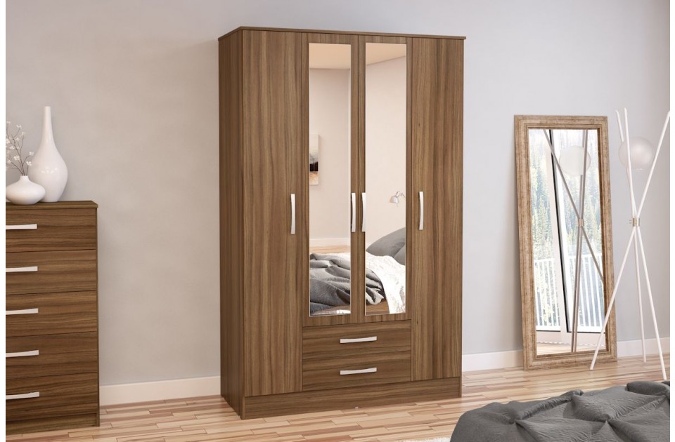 4 Door 2 Drawer Wardrobe with Mirror